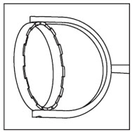 Кольцо фиксационное по Хофману-Тортону, закрытое. 12 зубьев для стабилизации и вращения глазного яблока. Внутренний d=16мм. Круглая ручка d=6мм, 135мм, титан