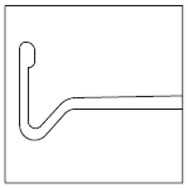 Крючок для мышц по Джеймсону. Стальная плоская рабочая часть длиной 11мм с маленьким грушеобразным кончиком d=3мм. Круглая титановая ручка d=5.4мм, 131мм