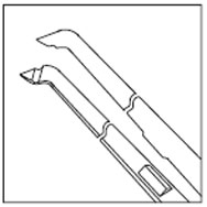 Пинцет для капсулорексиса типа Утрата, изогнутый под углом 45º. Деликатные концы с канавкой длиной 11.5мм, покрытые карбидом вольфрама. Круглая ручка d=8мм, 105мм, титан
