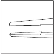 Пинцет для завязывания нитей по Макферсону, прямой. Концы шириной 0.3мм. Платформа для нитей 6мм, покрытая карбидом вольфрама. Плоская ручка шириной 10мм, 105мм, титан
