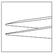 Пинцет ресничный, узкий. Суженные дистальные концы. Рабочие концы шириной 0.4мм и длиной 6мм, покрытые карбидом вольфрама. Плоская ручка шириной 6мм, 85мм, титан