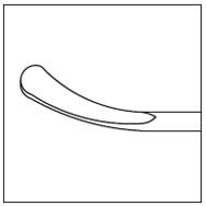 Шпатель для эпителиального лоскута для LASEK. Изогнутое стальное лезвие. Кончик шириной 1.9х0.3мм. Круглая титановая ручка d=5,4мм, 122мм