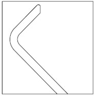 Шпатель для мембраны для DSAEK. Изогнутое под углом 90° лезвие длиной 1.3мм. Кончик шириной 0.2х1.0мм. Круглая титановая ручка d=5,4мм, 121мм, титан