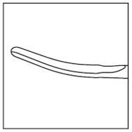 Шпатель для поддержания ядра по Канзасу, правый. Изогнутое под углом 17° лезвие длиной 18.5мм. Кончик шириной 1.2х0.4мм. Круглая титановая ручка d=5.4мм, 128мм