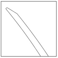 Шпатель по Леманну для IntraLASEK. Изогнут по радиусу и под углом 60°. Стальное лезвие длиной 10мм. Кончик шириной 0.05х0.4мм. Круглая титановая ручка d=5,4мм, 106мм