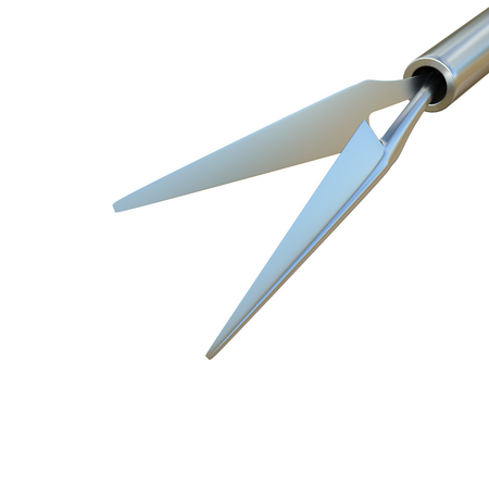 Ножницы прямые, общая длина с трубкой 30 мм, корпус титановый диаметром 7.3 мм, лезвия острые длиной 3.4 мм, трубка стальная прямая диаметром 0.9 мм